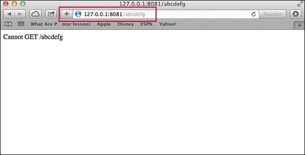 Following is a very basic Express app which starts a server and listens on port 8081 for connection. This app responds with Hello World! for requests to the homepage. For every other path, it will respond with a 404 Not Found.